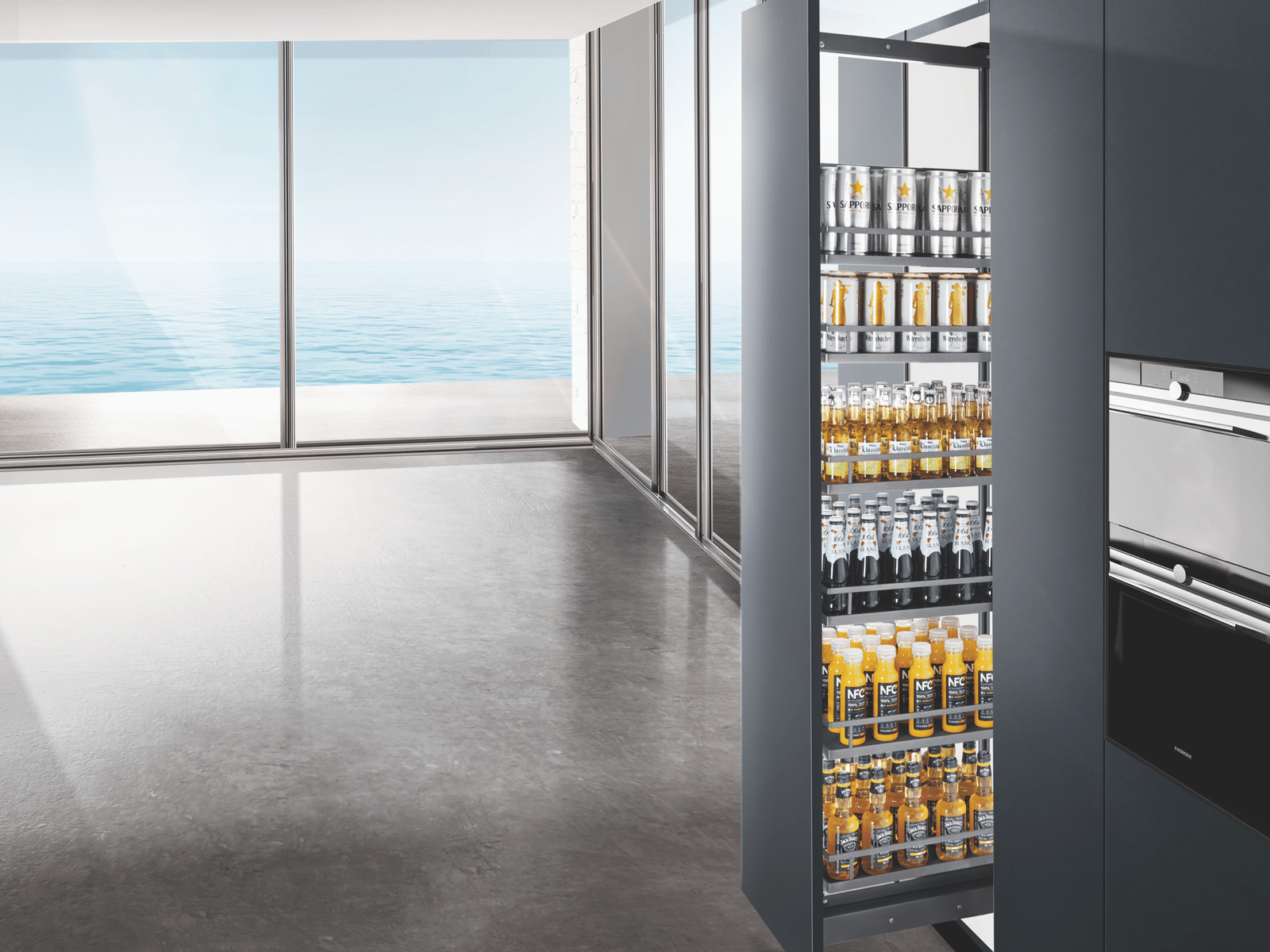 Carlton Series High Drawing Basket – Tall pull-out storage system for 300 & 400 mm cabinets, available in 4–6 layers. Durable steel gray design with smooth sliding and efficient organization.