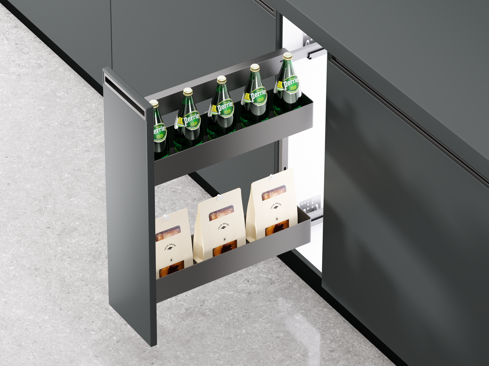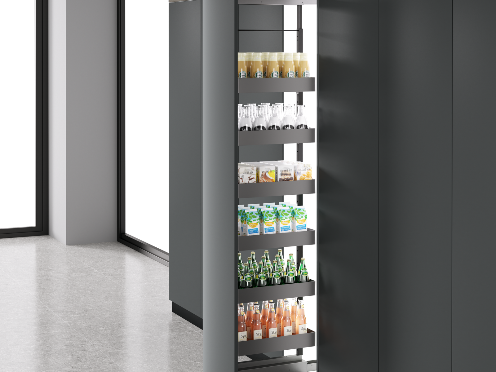 The Fanke Series Aluminum Kitchen Drawing Basket is a sleek, modern pull-out organizer that’s perfect for your kitchen pantry storage cabinets. Made from sturdy aluminum and featuring smooth damping slides, it really helps you make the most of your space, enhances your workflow, and provides a thoughtful storage solution for homes, hotels, and restaurants.