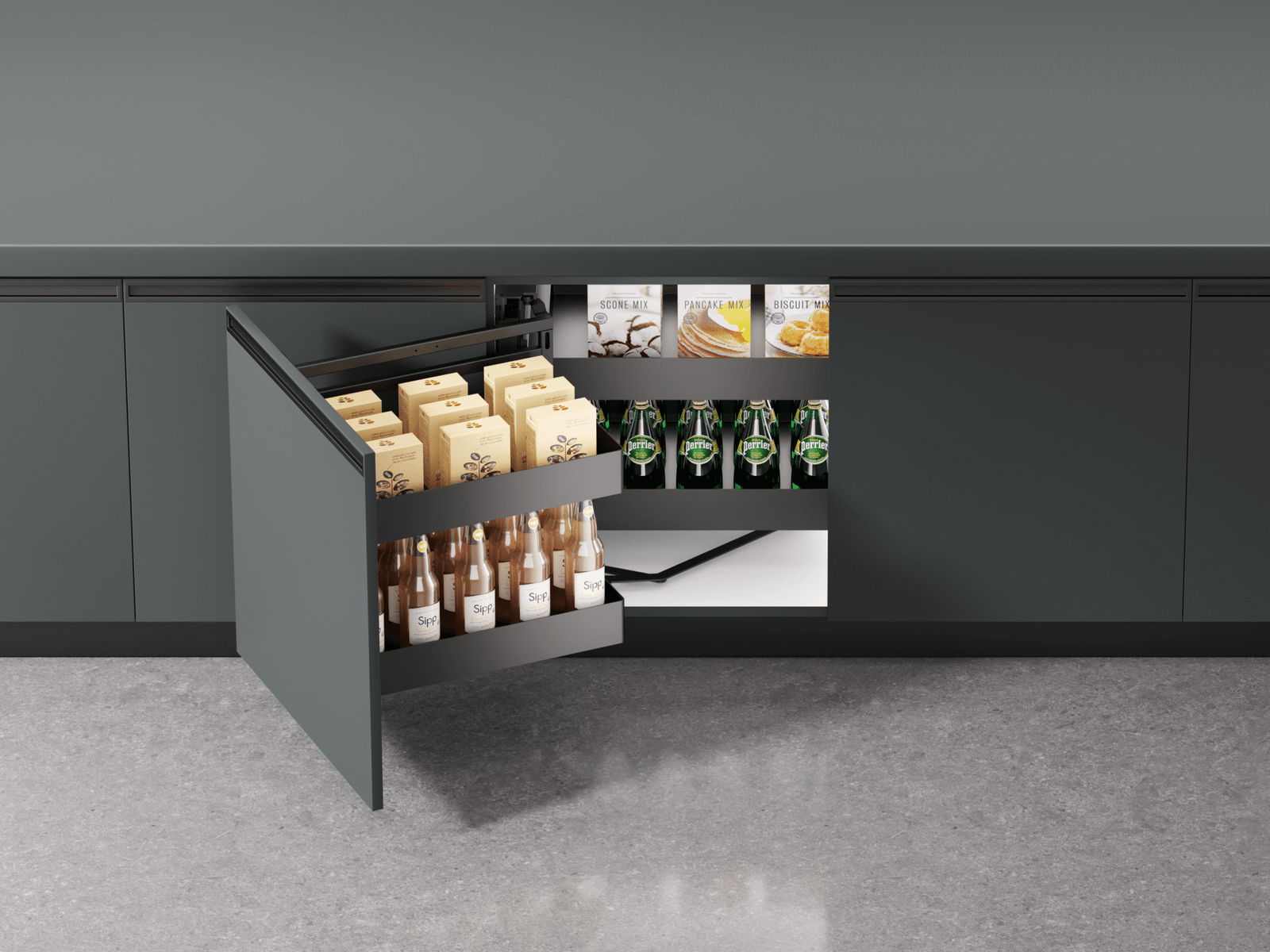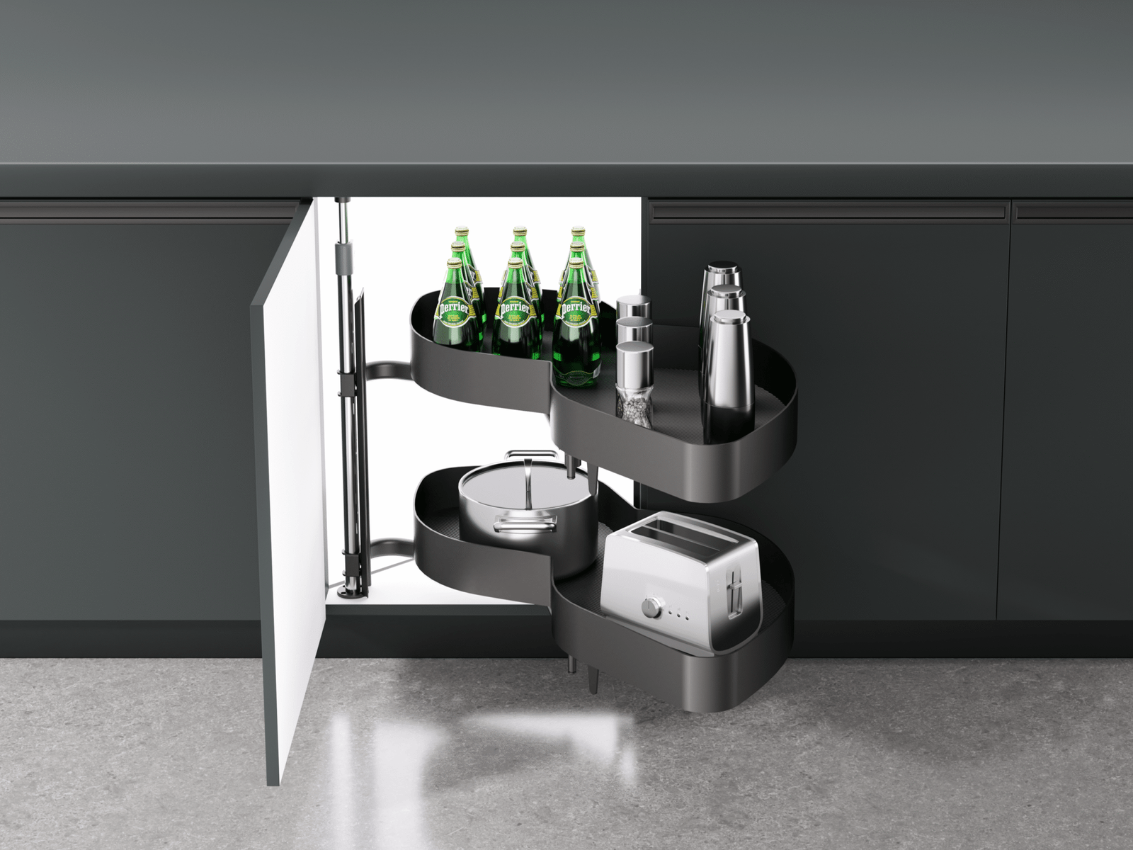 The Full Pull-Out Corner Monster Fanke Series is a stylish aluminum kitchen storage organizer designed to maximize your corner cabinet space. Featuring a smooth damping slide system and a smart storage layout, it ensures easy access, better organization, and long-lasting efficiency for both home and commercial kitchens.