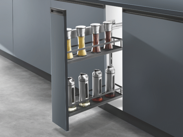 Designed for left and right installation, the Side Pull Basket enhances both functionality and aesthetics. Its premium metallic finishes — in silver-gray and steel-gray — add a refined, modern touch to any kitchen setup. Built for stability and long-term use, it’s the perfect choice for stylish, efficient storage.