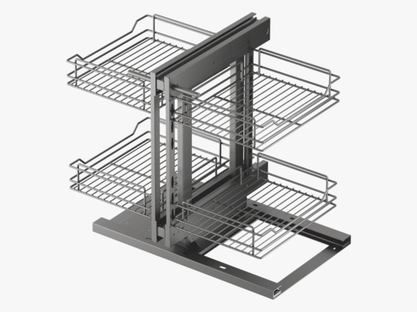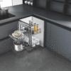 Crafted in a premium steel gray finish, this corner storage system combines strength, convenience, and contemporary design. Its ergonomic layout allows effortless organization of cookware and kitchen essentials, while the full-extension slides ensure silent and stable movement. Ideal for kitchen cabinets ranging from 600–830 mm in width, it transforms awkward corner areas into efficient, elegant storage zones.