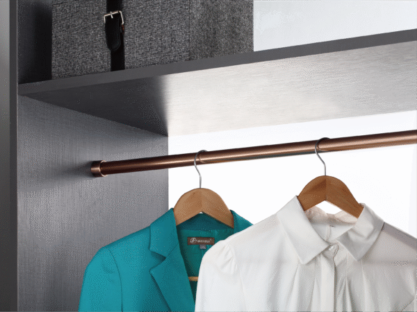 Designed to complement the Corner Garment Pipe, this seat embodies modern craftsmanship and technical precision. The Red Bronze coating resists corrosion and fading, maintaining its rich, luxurious tone for years. Combined with precise tube dimensions (Ø25×H3000 mm), it offers exceptional load-bearing stability suitable for daily residential or commercial wardrobe use.