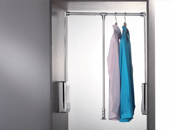The Lifting Hanger from the Hanging Rod Series redefines wardrobe ergonomics through an advanced dual-buffer lifting mechanism that ensures smooth downward pull and controlled upward motion. This innovation prevents sudden rebounds, improving safety and ease of use for daily wardrobe access. Ideal for users who value smart design and comfort, it allows easy access to higher wardrobe spaces without strain.