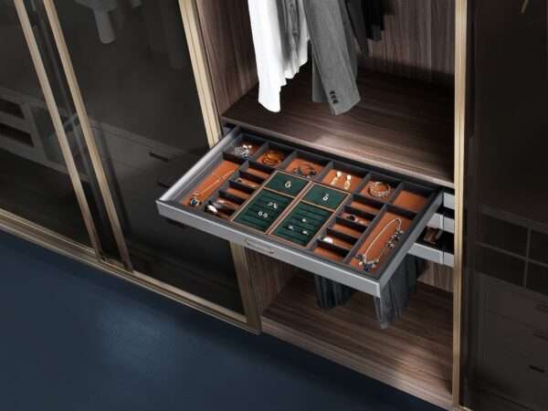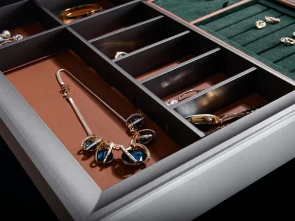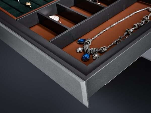 Crafted from high-quality leather materials, the jewelry box offers enduring protection for belts, ties, jewelry, and personal accessories, while maintaining a soft, sophisticated presence within your wardrobe. Its minimalist structure and space grey tone complement modern interiors, adding warmth and balance to daily organization.