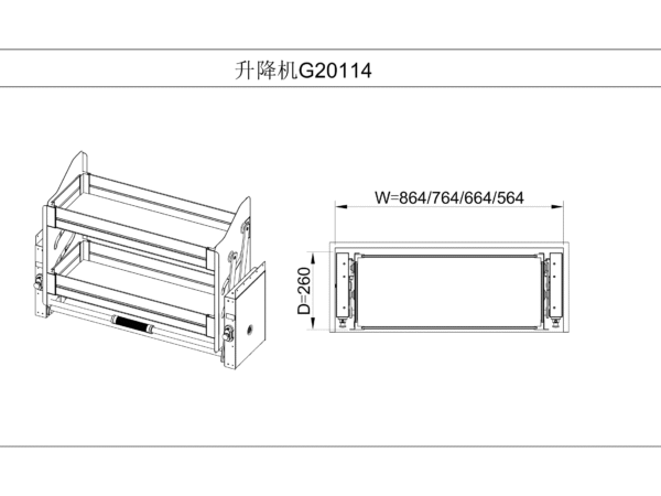 | Specification | W864 x D260 × H550 |