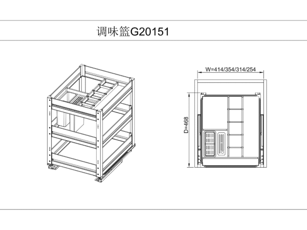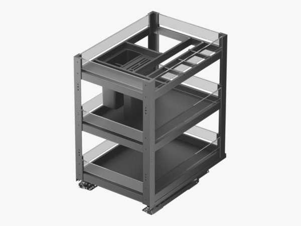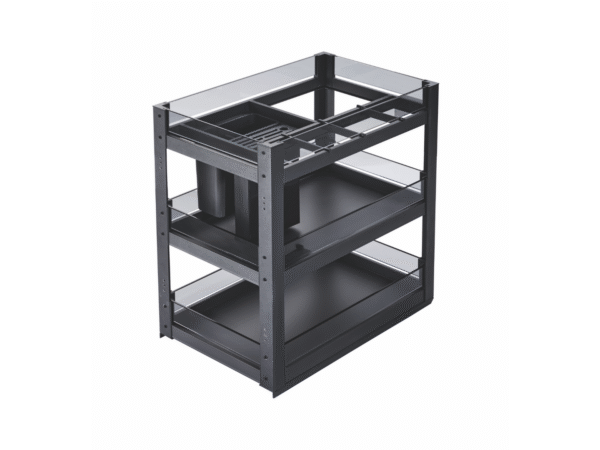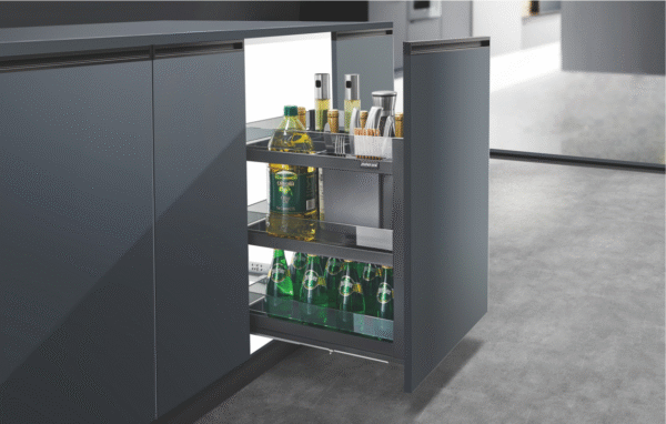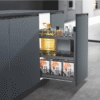 Keep your kitchen neat and stylish with the Phantom Series Seasoning Pull Basket, available in cabinet sizes from 300 mm to 450 mm. Designed in premium gold-copper gray and steel gray finishes, this pull-out basket provides smooth sliding, easy access, and organized storage for spices, jars, sauces, and condiments.