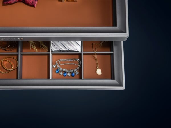 Perfectly suited for storing belts, ties, jewelry, and personal accessories, the Treasure Box enhances spatial texture and adds a touch of calm luxury to wardrobes and dressing areas. Its humanized design and meticulous craftsmanship make it an ideal blend of function and elegance.