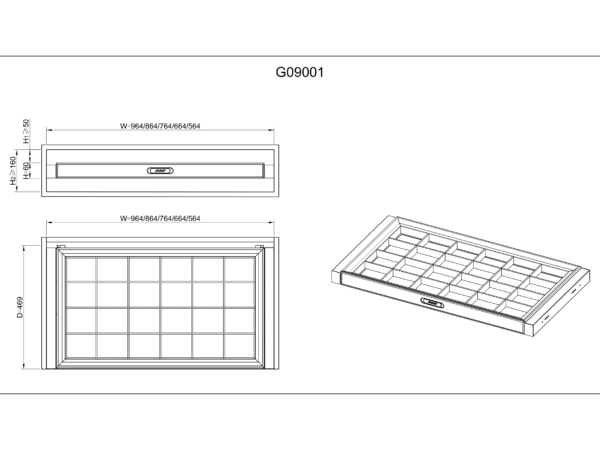 Multiple Sizes: Available for cabinet widths of 564–964 mm in space grey finish.