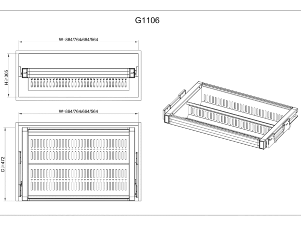 Adjustable Aluminum Frame: 100 mm flexible width for multiple cabinet sizes.