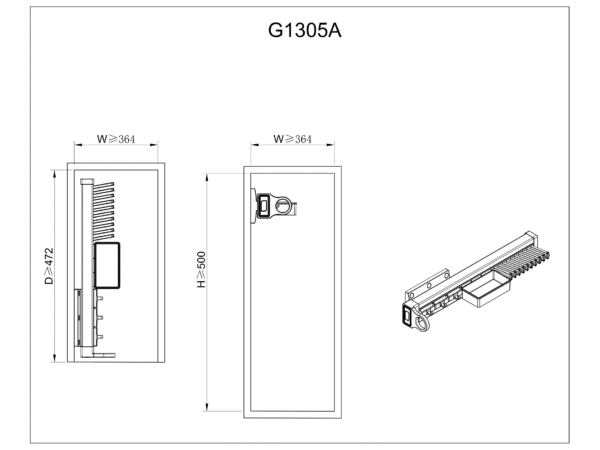 Compact Design: Fits wardrobes with cabinet widths starting at 364 mm.